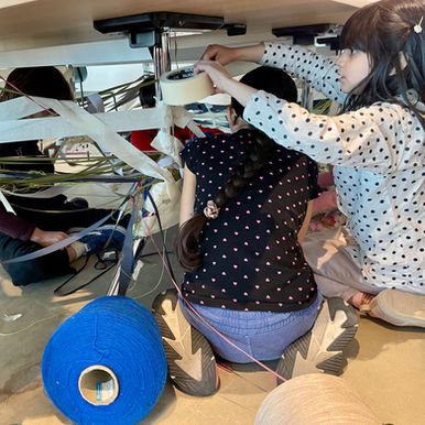 Kids reframed the space with string and tape anchored to chairs, tables, and light fixtures throughout the classroom.